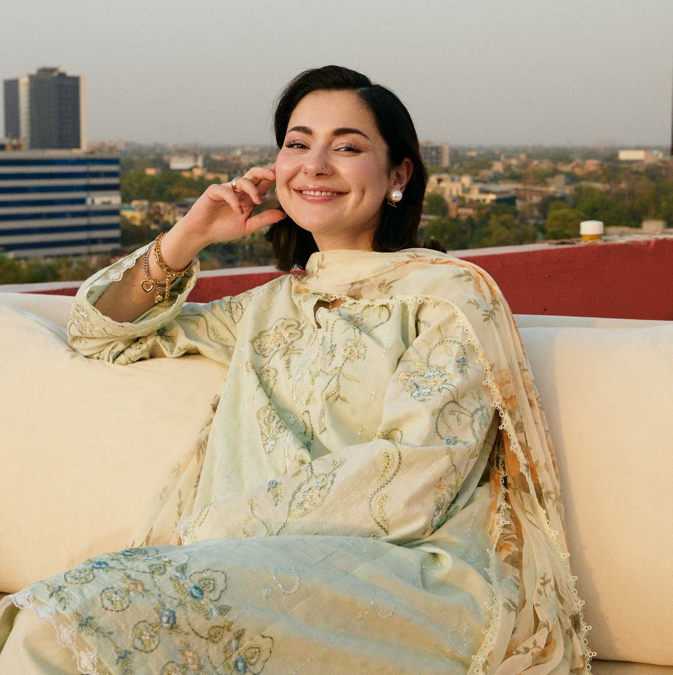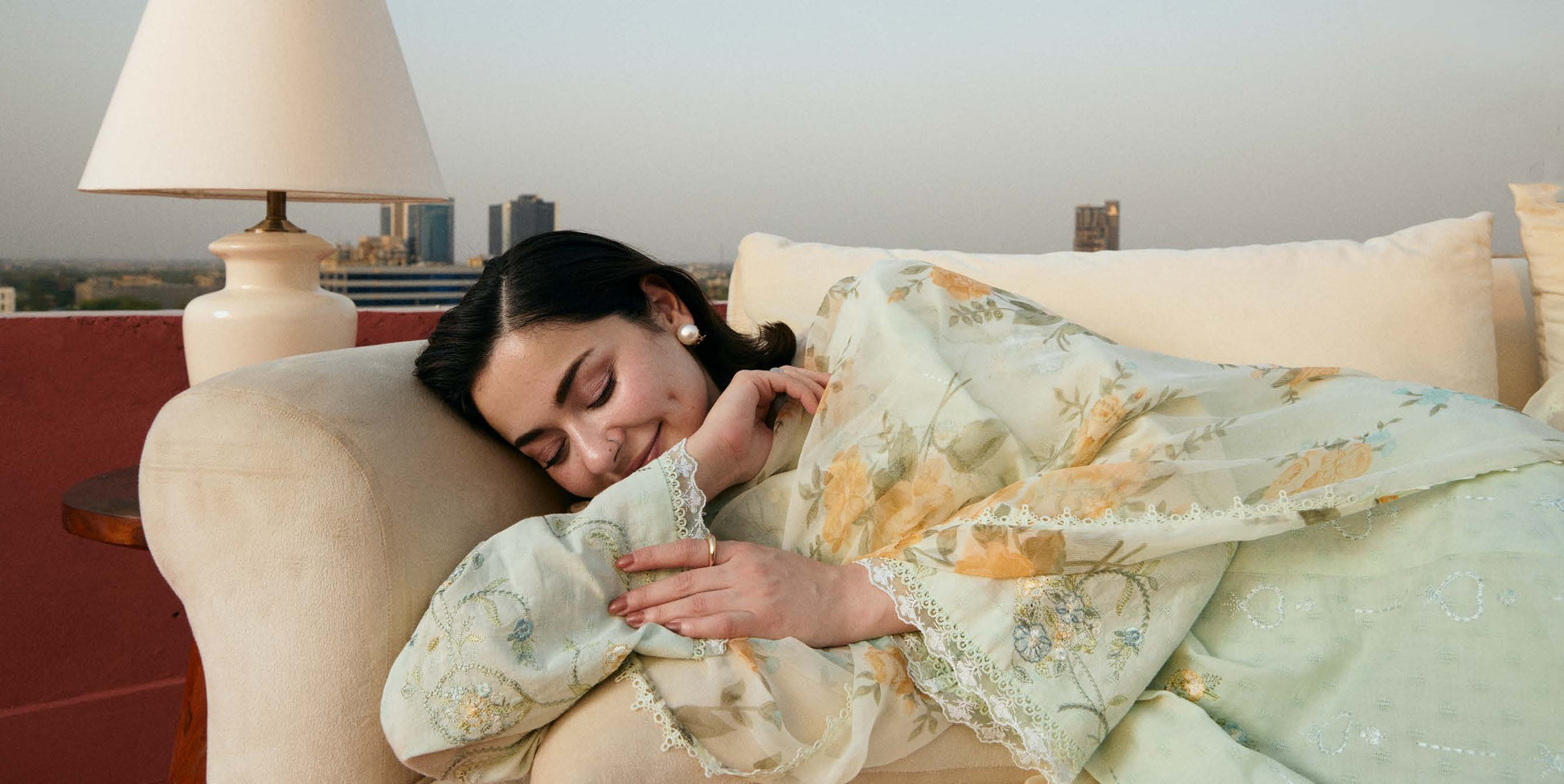 A cool mint green jacquard ensemble layered with subtle embossed patterns and detailed embroidery, paired with a light chiffon dupatta that adds a soft, fluid contrast.
