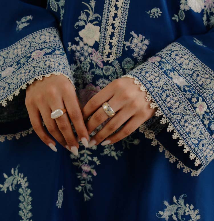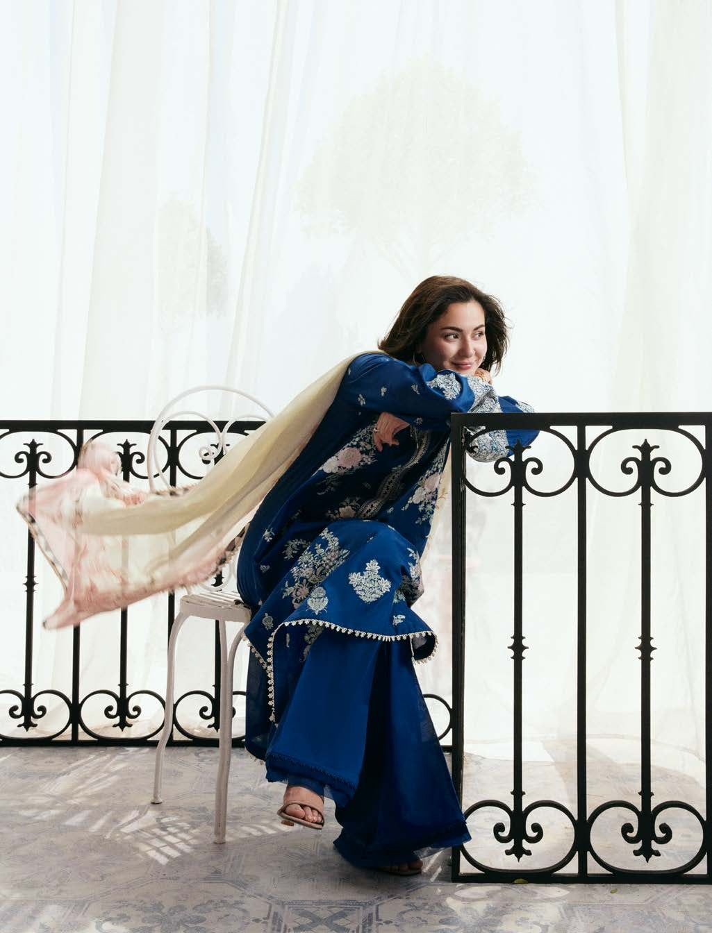 over a pastel-toned blue lawn base, creating a fresh, airy